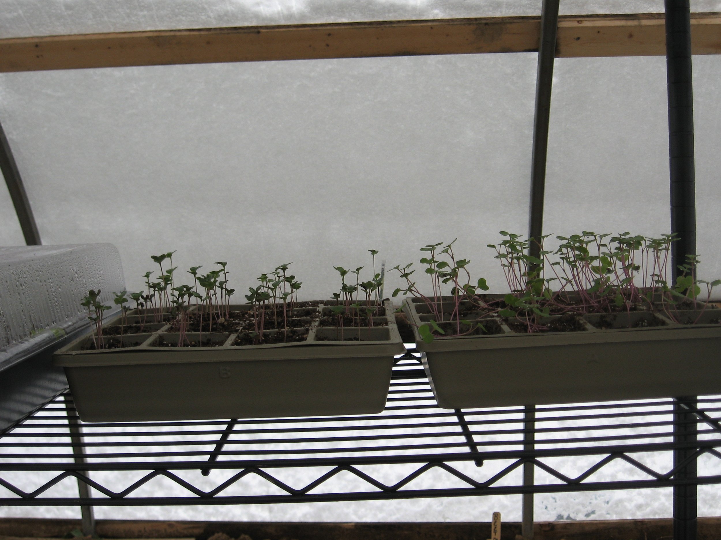 Broccoli seedlings in the greenhouse. We had a late snow that year!