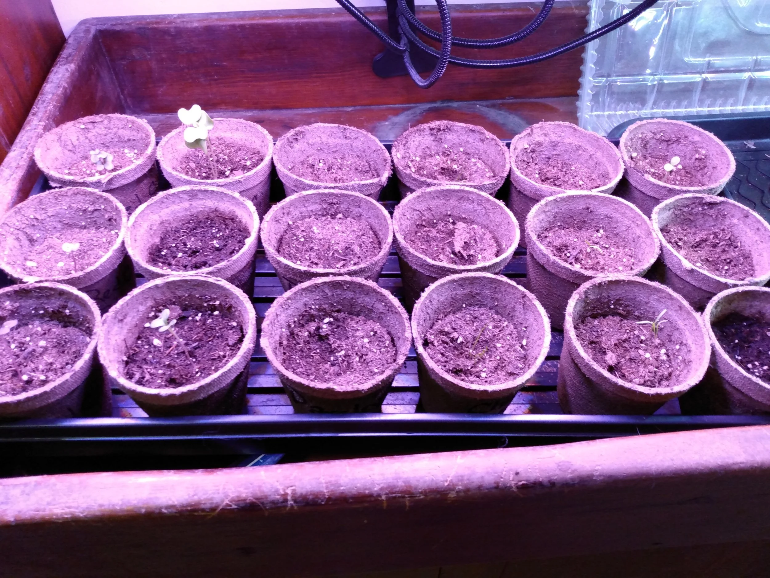 Seedlings under lights.